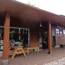 店舗入口と裏手に屋外の飲食スペースがあります。