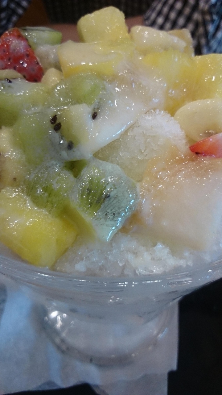 1階は喫煙席、2階が禁煙席とのことでした。夏だからかかき氷がメニューにありました。フルーツかき氷ってどんなのだろう?と思って注文してみたところ、しろくまのような感じでおいしかったです。