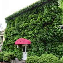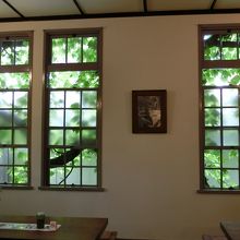 倉敷美観地区、大原美術館のすぐ隣、元事務所と思われる古い木造洋館を改造した喫茶店。メニューは紅茶やコーヒー等で純喫茶。雨上りのみずみずしい緑のツタで覆われ、入口扉の白・ひさしの赤のコントラスや室内から窓越しにみる幻想的な景色に心癒されました。美観地区の散策や美術館観賞で疲れたときの、ひと時の休息にお勧めです。