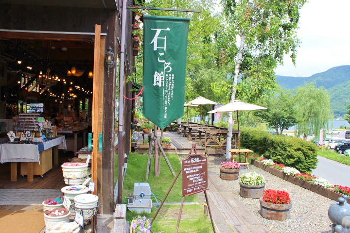 河口湖畔のきれいな石を扱っているところ