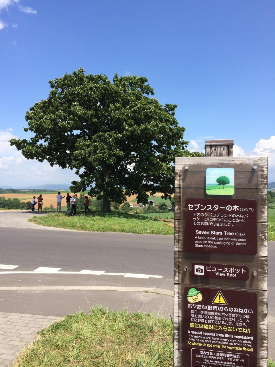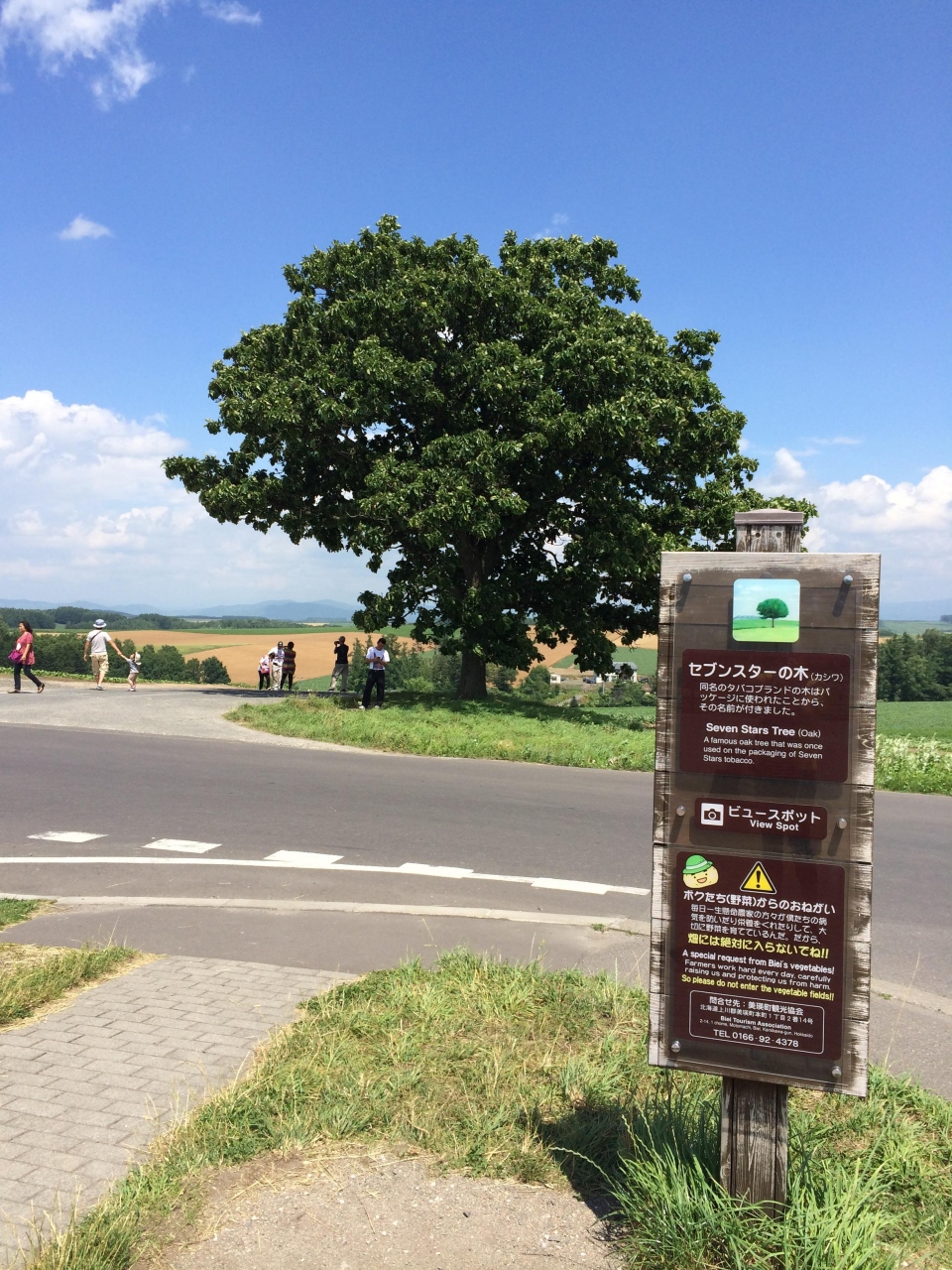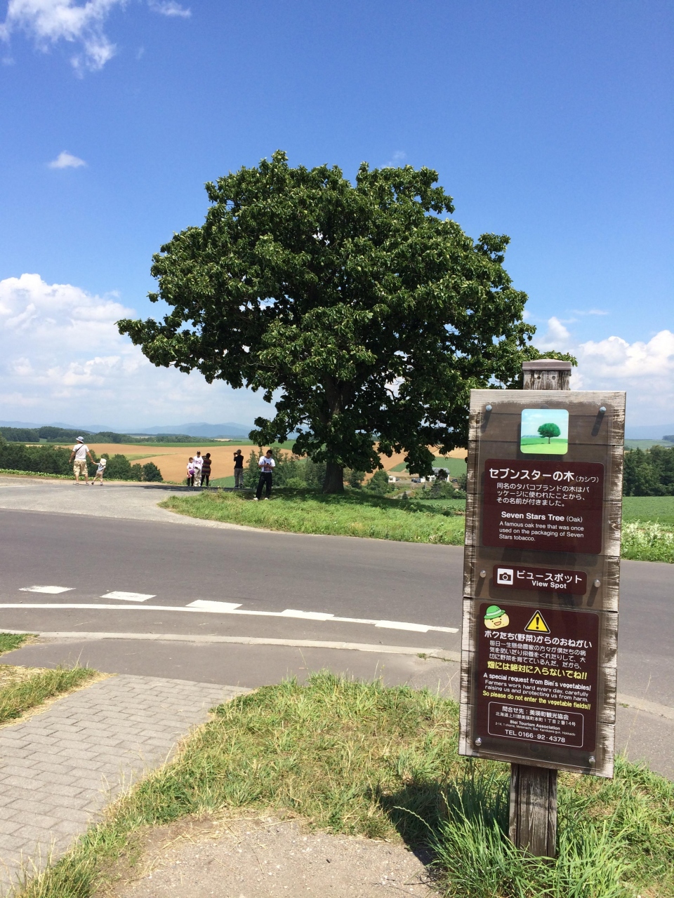 ここの駐車場周辺はセブンスターの木だけでなく、広大な麦畑やポプラ並木など絶景に囲まれています。