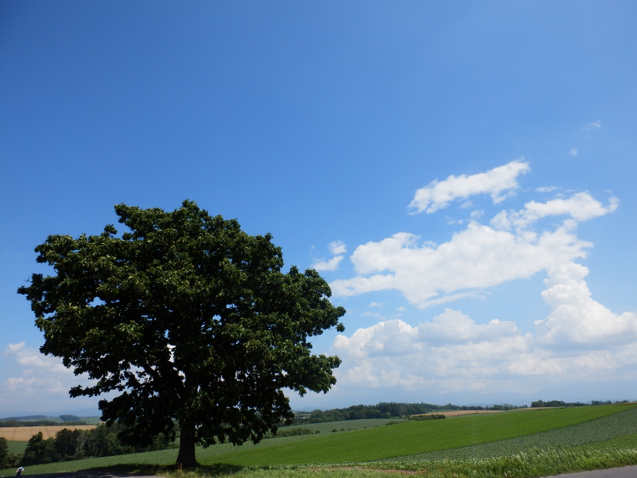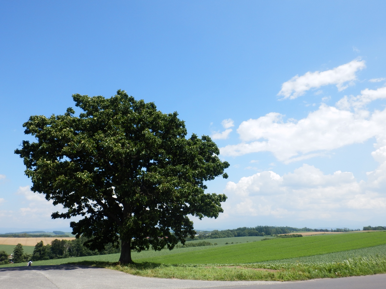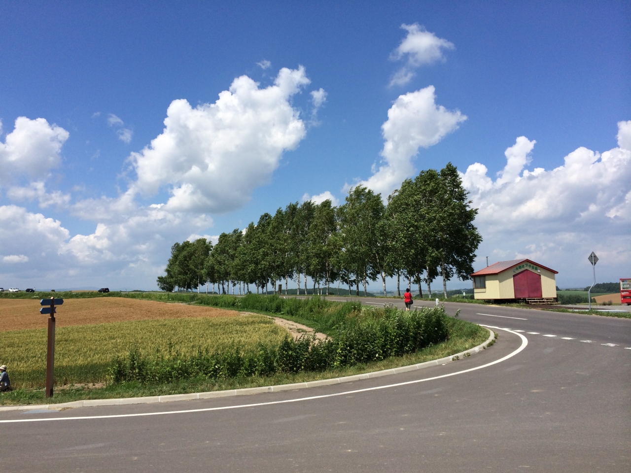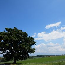 ここの駐車場周辺はセブンスターの木だけでなく、広大な麦畑やポプラ並木など絶景に囲まれています。