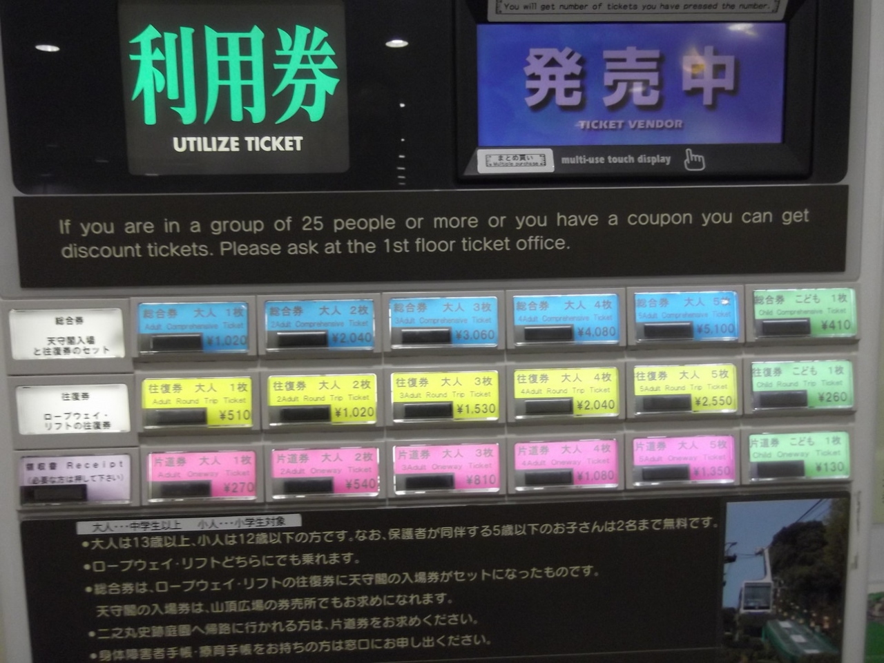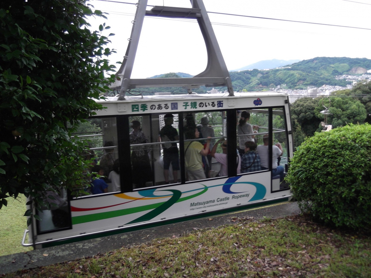 商店街から松山城の中腹まで2~3分で移動できます。中腹から松山城までは高低差が余り無いので楽に歩くことができます。隣に掛かっているリフトであれば、待ち時間がありませんが、5分くらいでしょうか?天候にも左右されます。キャビン内は6名分程度の座席しかありませんでした。従って、ほとんんどの人は立ち乗りとなります。
