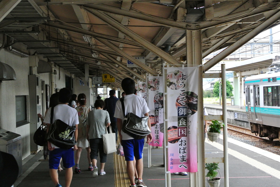 NHKの連続ドラマ「ちりとてちん」の撮影場所として観光に力を入れたようですが。更にはオバマ大統領に肖った、オバマ饅頭、煎餅が待合室の売店で売られていますが、観光客が少ないので寂しそうです。小浜線は 1時間に1本程度しか走っていないし、高速道路が開通したことで電車離れが進む気がします。