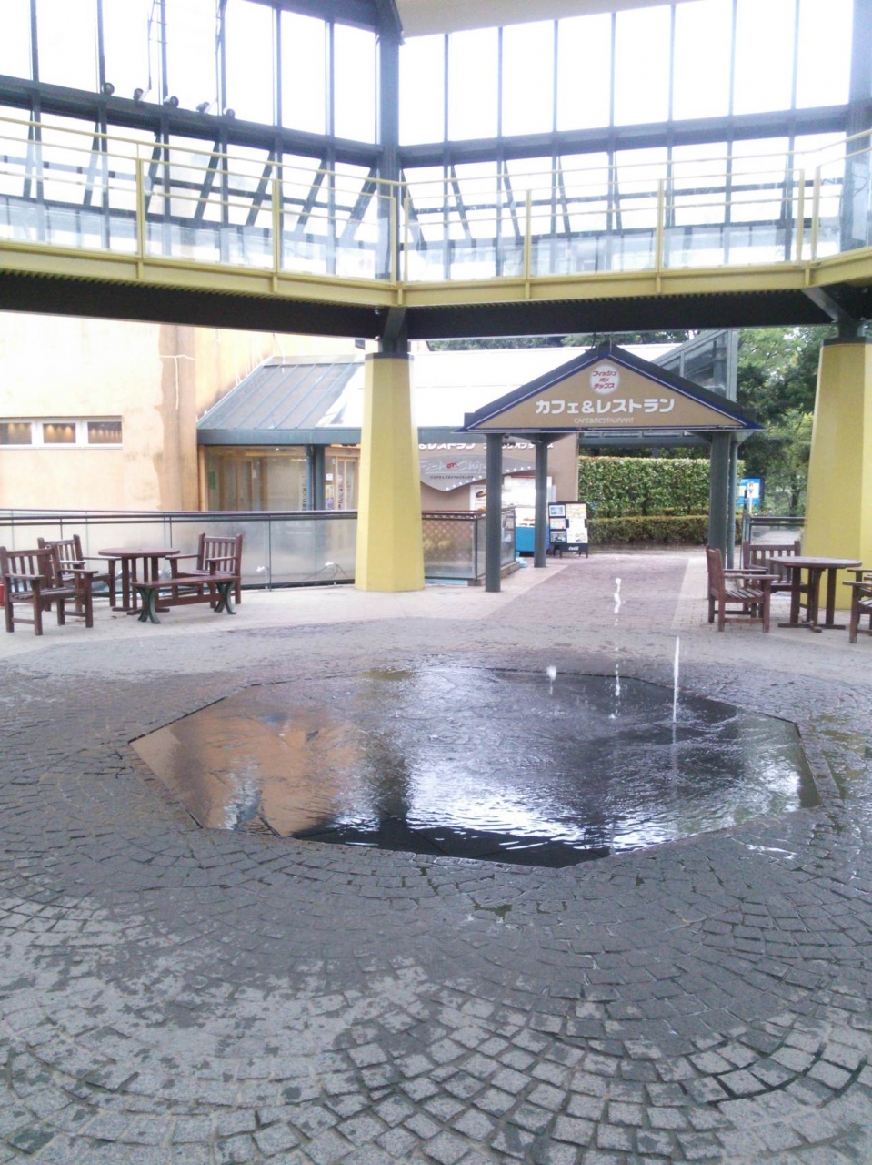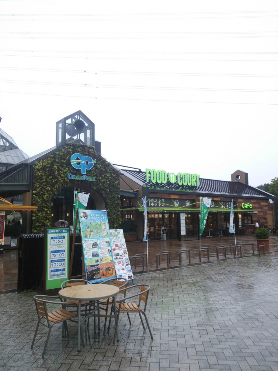 おしゃれなフードコートに、水の流れる涼しげな風景。中央には子供が遊べる、ジャブジャブ噴水。オアシス側には遊園地まであります。