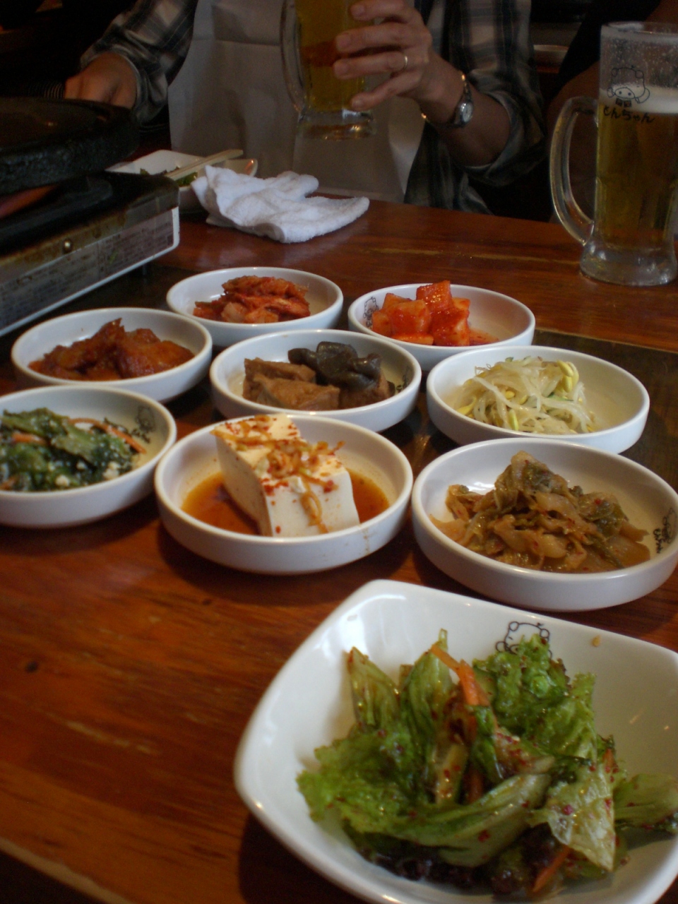 こちらのお店はいつも混んでいるらしいですが私達が行った日は雨が降っていたせいか空いていました。サムギョプサルが有名ですが他のお店に比べてお値段も安く美味しいので人気があるみたいですね。バンチャン(付け合せのおかず)の品数も多いのでお得です!