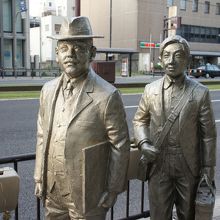 黒田清輝、桜島の噴火を描くのモニュメントは、天文館からほど近くの電車通り沿い。黒田清輝は、大正3年(1914年)の桜島の大噴火を描くために、桜島に渡りますが、これは、弟子の山下兼秀と港に向かう様子を表したものです。この噴火の際、桜島は陸地とつながり、死者35人を出す大惨事となりました。相当の決意もうかがわれる行動だったのではないかとも思います。