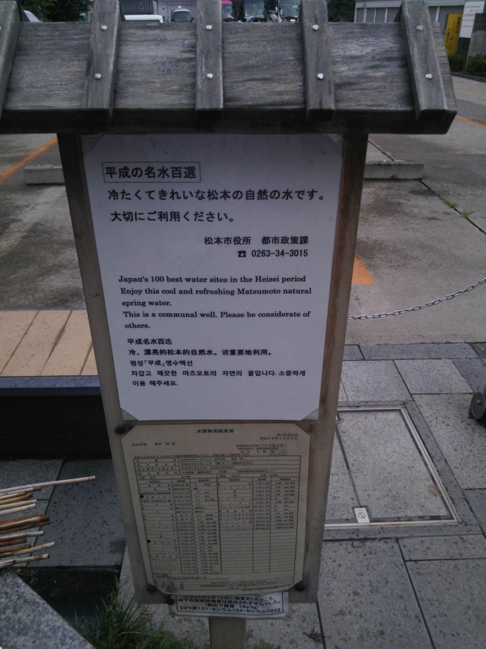 水めぐり整備事業として掘られた井戸で、平成の名水100選として指定されているようです。松本のキレイな自然水と書かれていました♪