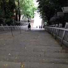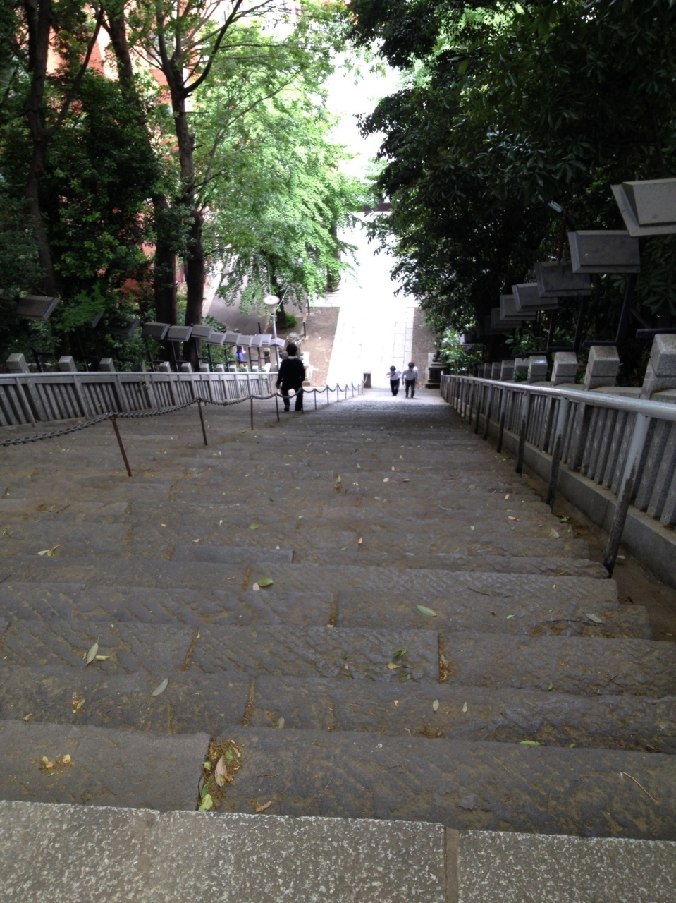 愛宕神社のこの参道である男坂の急な石段は出世の石段と呼ばれています。これは、江戸時代に徳川家光が山上にある梅が咲いているのを見て、梅の枝を馬で取ってくる者はいないかと言ったところ、讃岐丸亀藩の家臣が見事馬で石段を駆け上がって枝を取ってくることに成功し、その者は馬術の名人として全国にその名を轟かせた、という逸話から来ているようです。