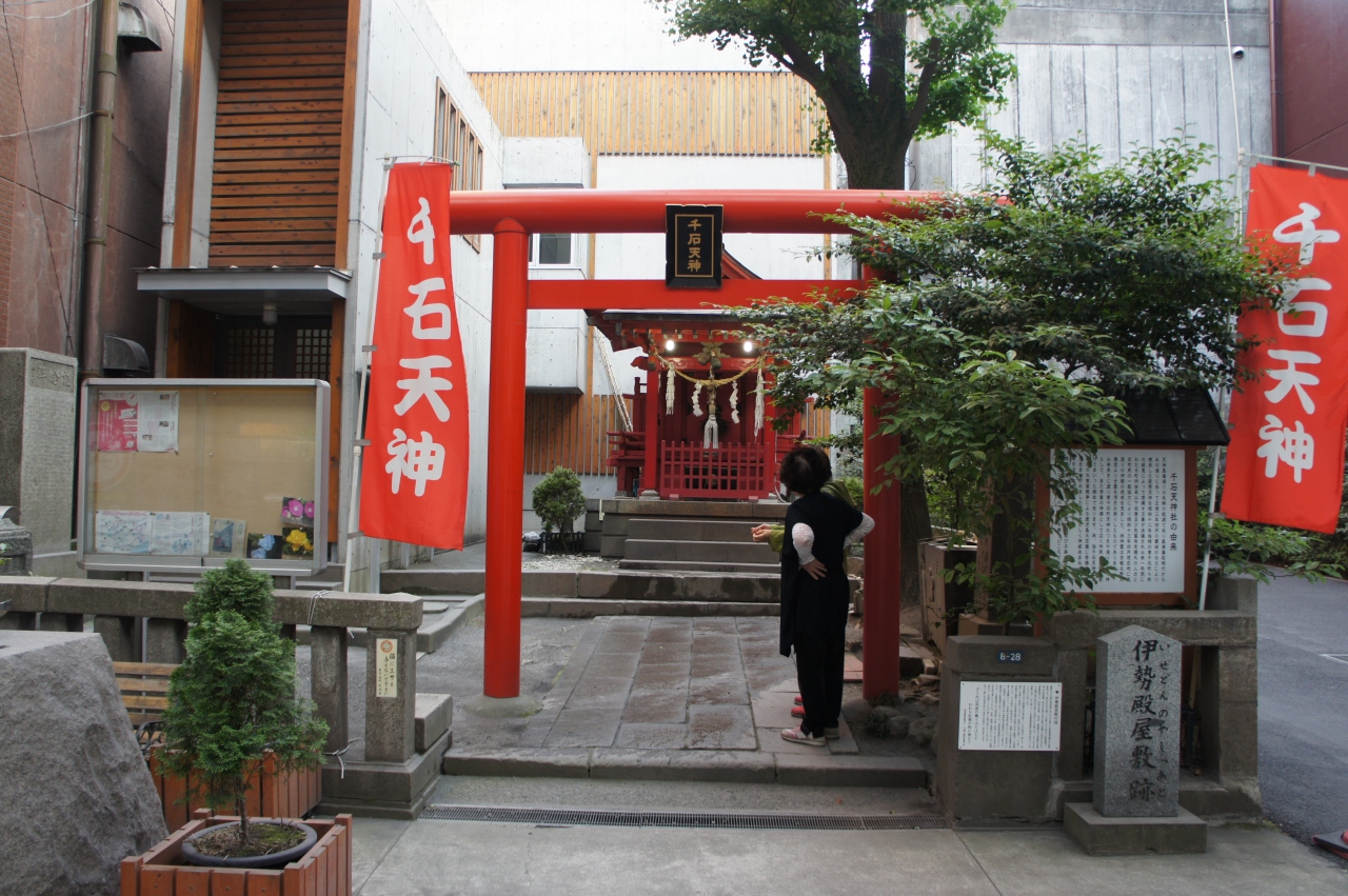 入り口わきには、千石町の名前の由来となった伊勢氏の屋敷があったことを示す石碑があります。