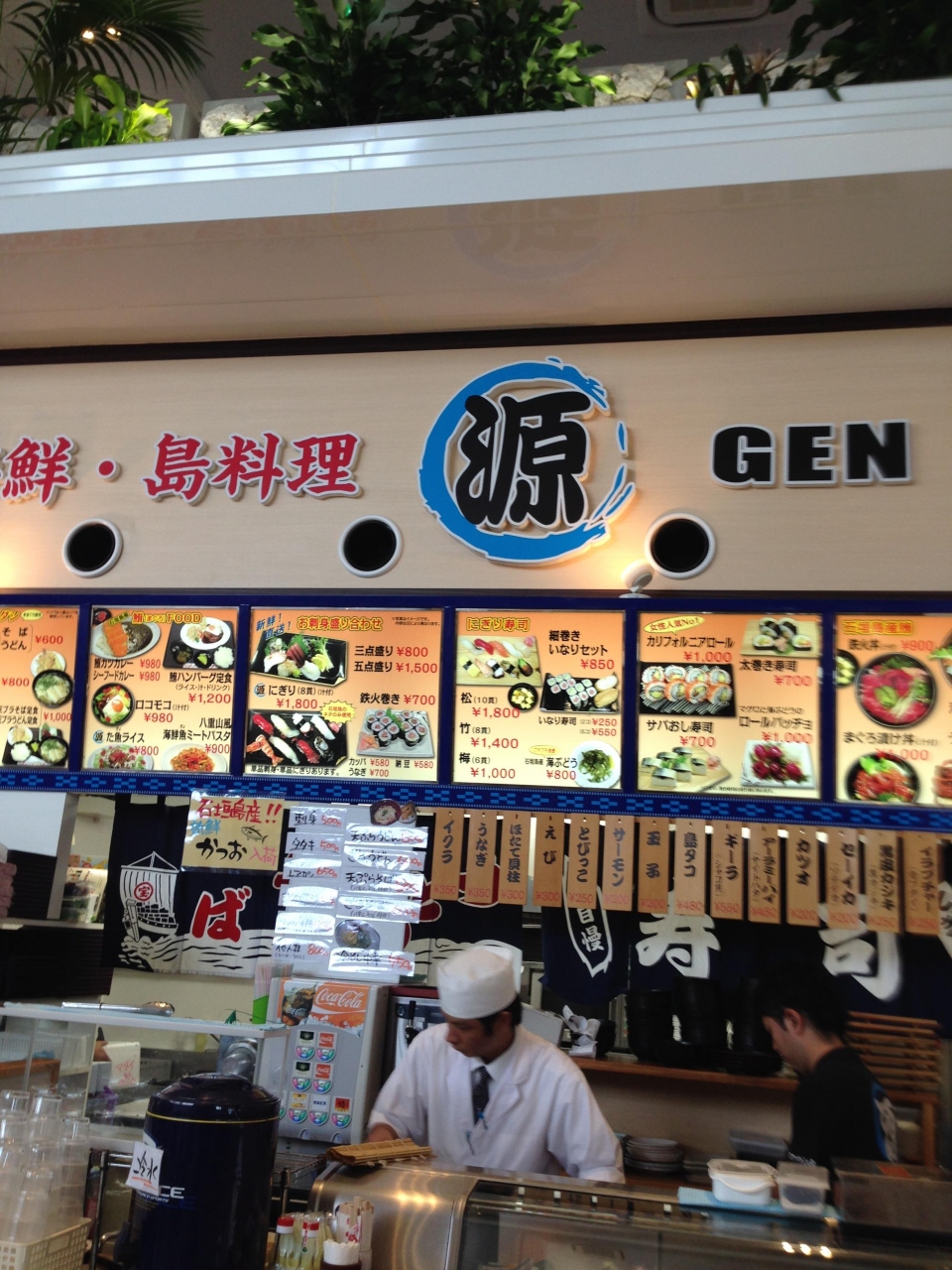 石垣空港の中にある フードコートです。 石垣市内にある 居酒屋の支店のようです。本格的なお寿司握りを食べることができます。ネタケースの中にはいろんな新鮮なネタがならんでいます。他にも海鮮メニューがたくさんあり とてもお勧めです。