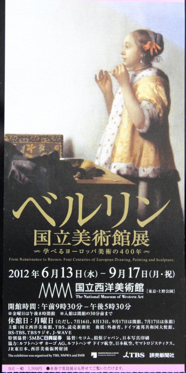 国立西洋美術館で開催されている「ベルリン国立美術館展」に出展されているフェルメールの「真珠の首飾りの少女」を見に行きました。この絵は初来日です。モデルの少女はほかのフェルメールの絵画にも登場しています。尚、国立西洋美術館は「ル・コルビュジエの建築と都市計画」の構成資産のひとつとして世界遺産に推薦されています。
