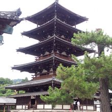 今までいろいろ五重の塔を見ましたが、最古の五重の塔を見に行きました。色のコントラストが非常に美しく、隣の金堂と合わせた非対称性のレイアウトも飛鳥時代を想像させてくれます。華美さは無いですが、逆に自然に感じられるところに魅力を感じました。
