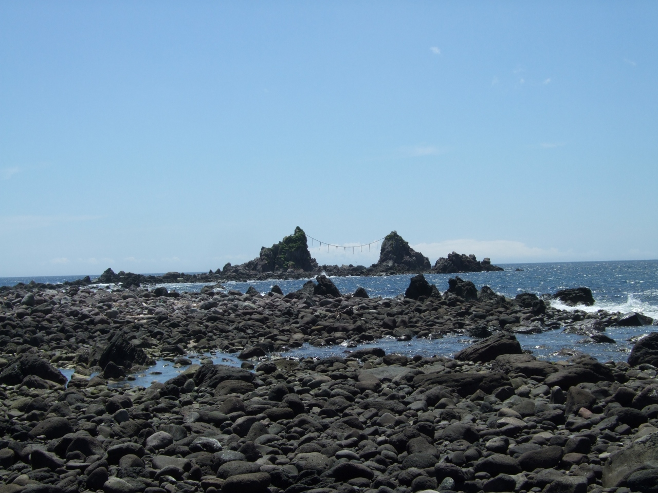 岬には三ツ石があり、引き潮のときなら歩いて行けそうな感じでした。