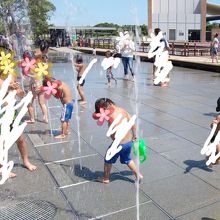 足首が隠れるぐらいの深さのところと噴水が出てくるところがあります。