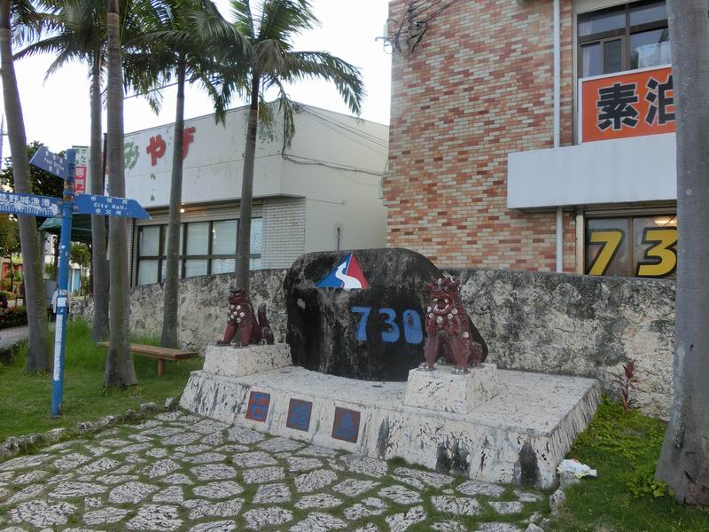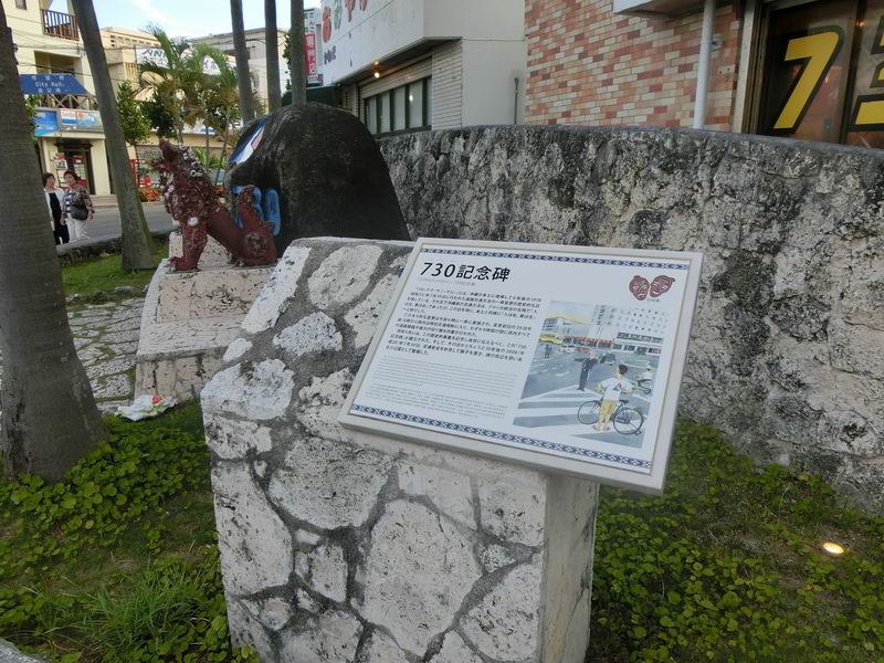 交差点の名前は、戦後アメリカに占領され右側通行であったのを、返還後の1978年7月30日より本土と同じ左側通行に戻したことに由来。記念碑が交差点の脇にあります。また、この交差点が日本国内では国道の最西端になります。石垣港離島ターミナルや市役所なども近く、島の中心となる交差点です。ほとんどの観光客がこの交差点を一度は通るのではないでしょうか。わざわざ見に行くほどのものではないので、通った際に足を止めて見てみてください。