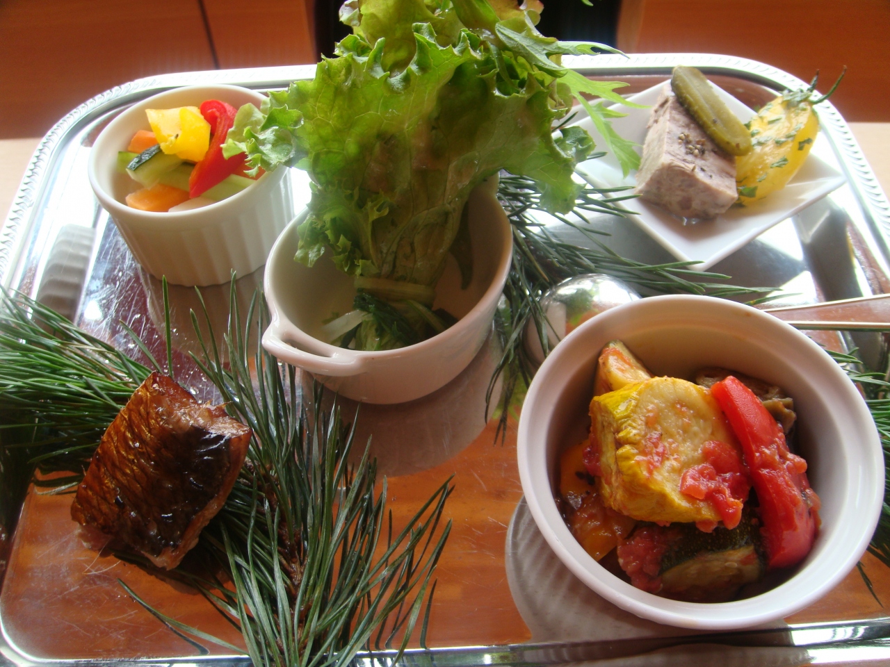 前菜を5種類盛り込んだ「丘のプラトー」、綺麗な盛り付けに感動です。