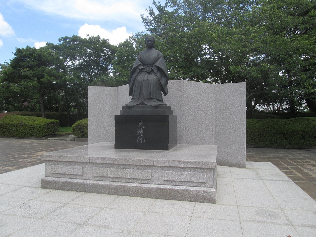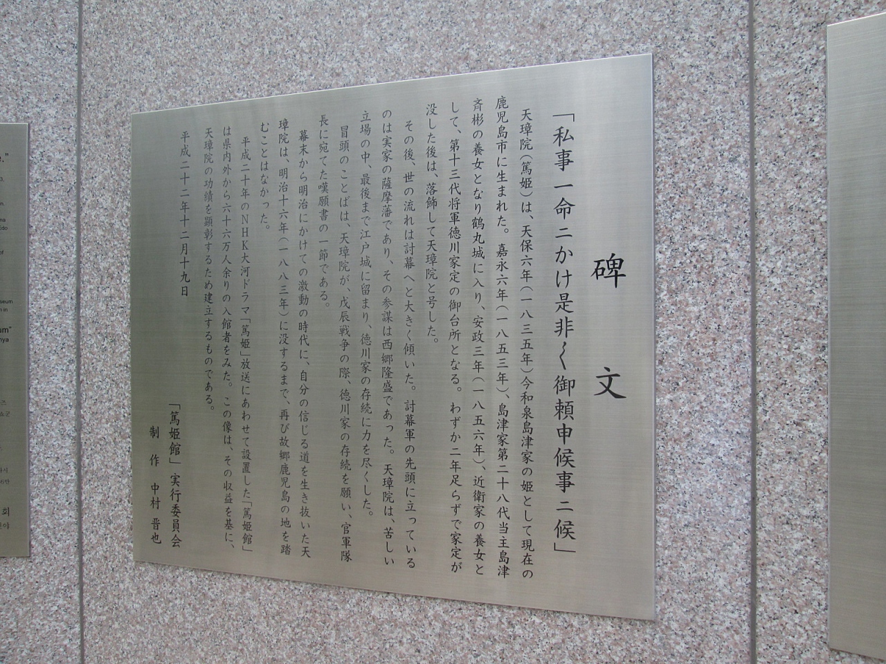 - 建てられたのは平成22年、さては「篤姫」ブームに乗ったのかな…比較的大きくて立派な碑で、篤姫の後にある屏風に、篤姫の略歴がありました