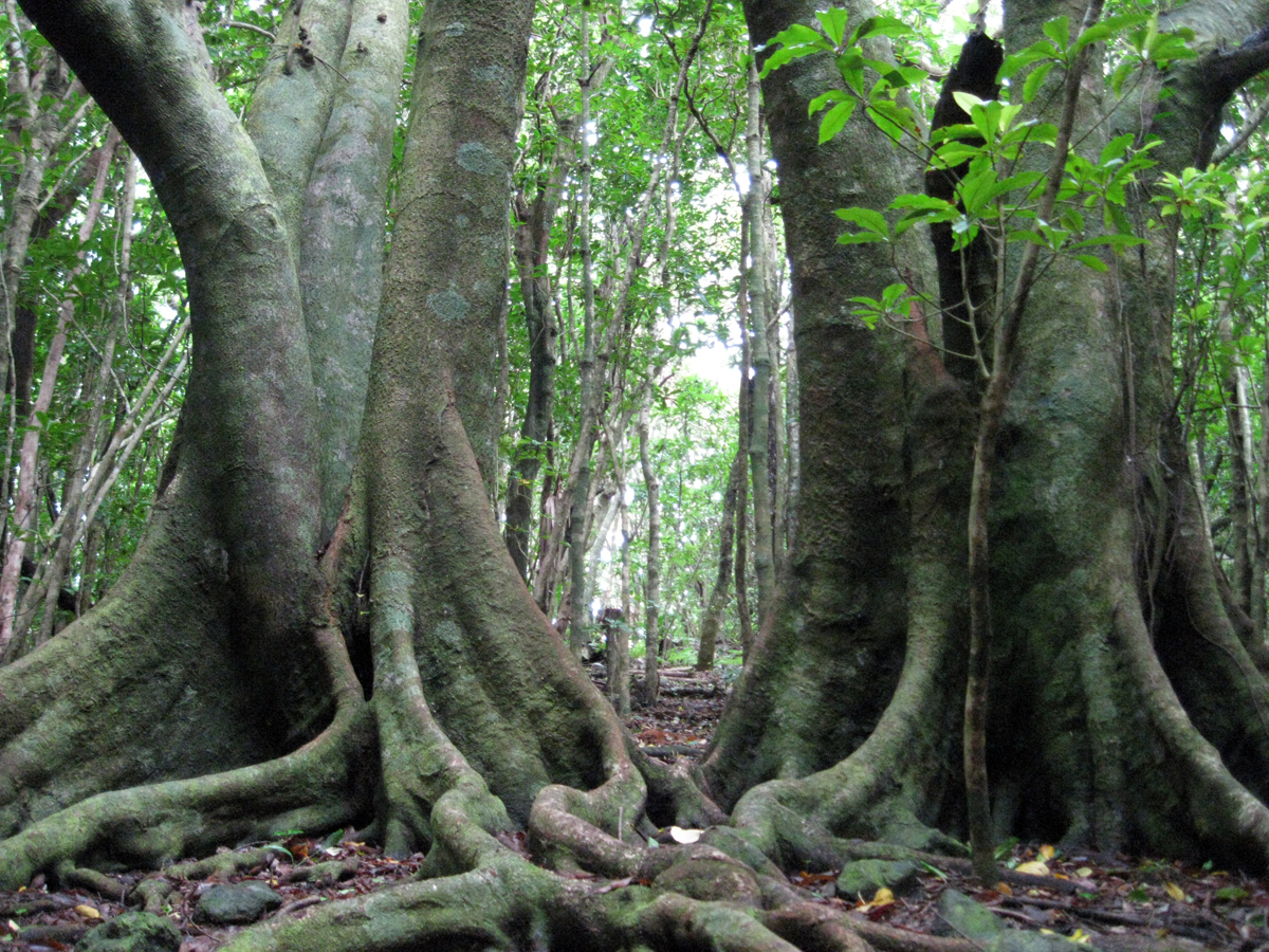 東回りの登山道でワダンノキやハハジマノボタン、シコウランやコブノキなどを見ながら約2時間半で下山できます。