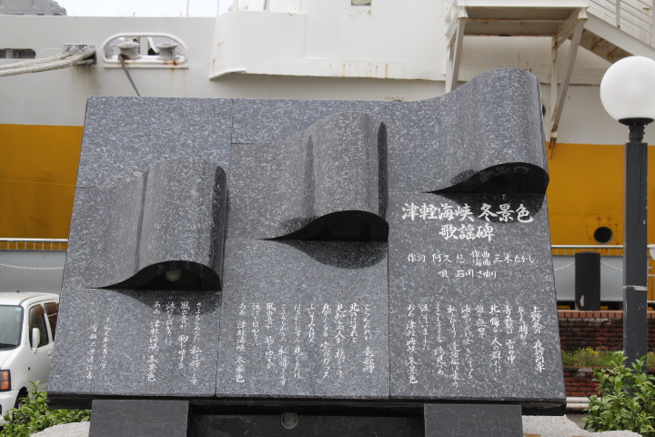 青森市のベイエリアの八甲田丸の真ん前に「津軽海峡冬景色歌謡碑」が立っています。ねぶた祭開催期間なのに雨のせいか辺りはひっそりしています。この碑を見ると何故か昭和の名曲を口ずさんでしまいます。連絡船は風情がありますね。