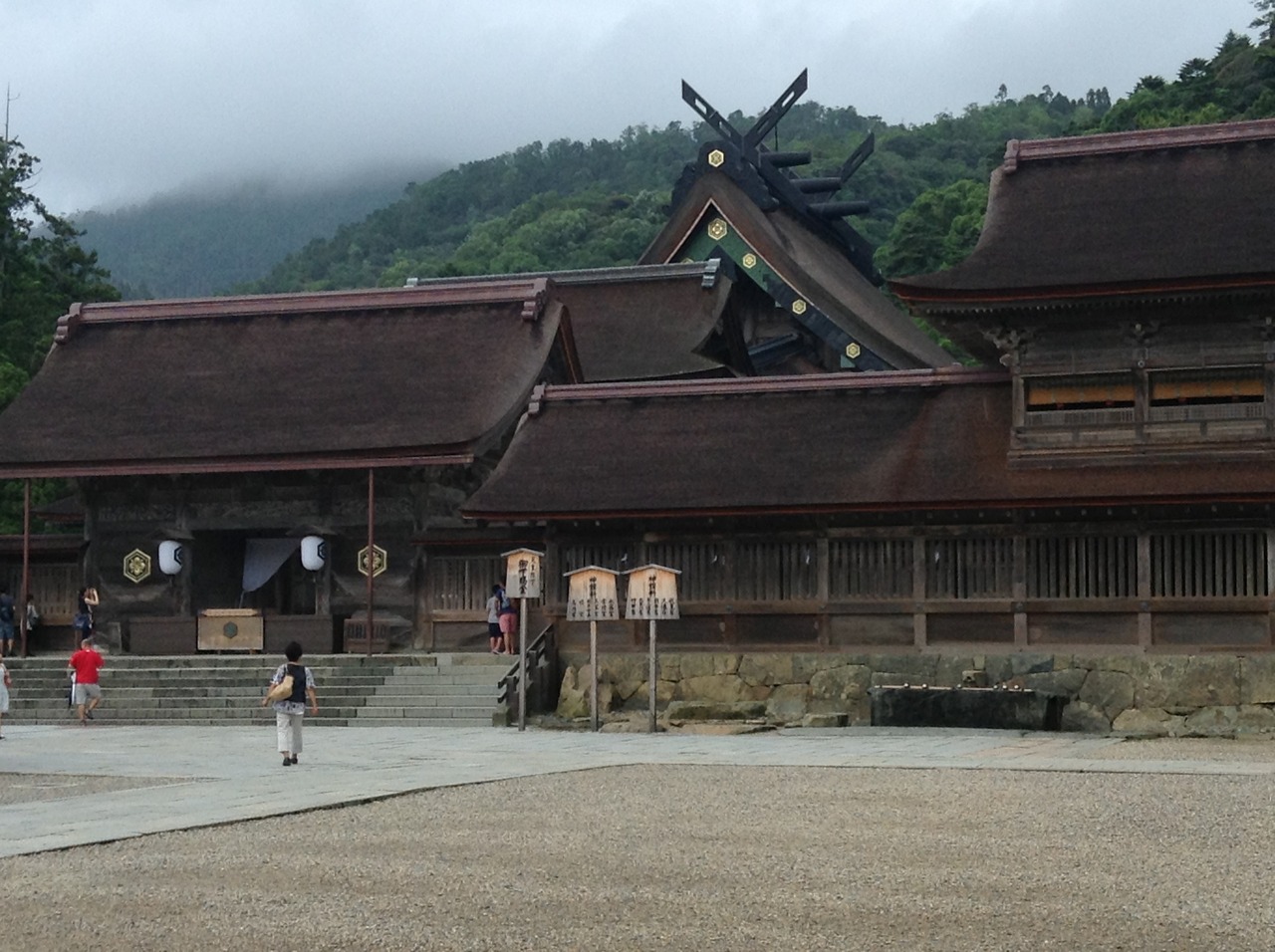 台風が近づき小雨模様でしたが、下り参道から大社作りの本殿まで堪能しました。