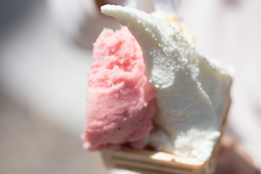 好きだったパン屋さんが撤収してしまいましたが、土曜日にやっているマルシェは健在で、色々なところの新鮮な野菜や、ジェラート屋さんなどの小さなお店が軒を並べます。特に是非食べていただきたいのがジェラートで、美味しいです。涼やかな噴水もあって真夏以外はオススメできます。