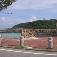 入り江には赤い橋が架かっており、この橋の先は流れがあるので注意が必要です。