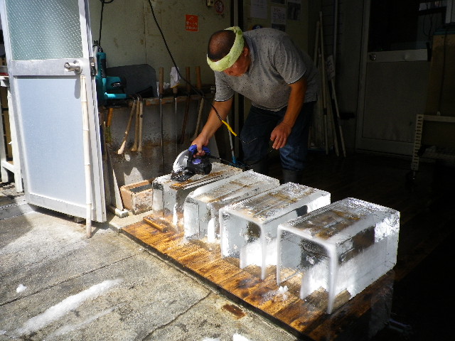 朝から氷で涼をとる
