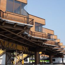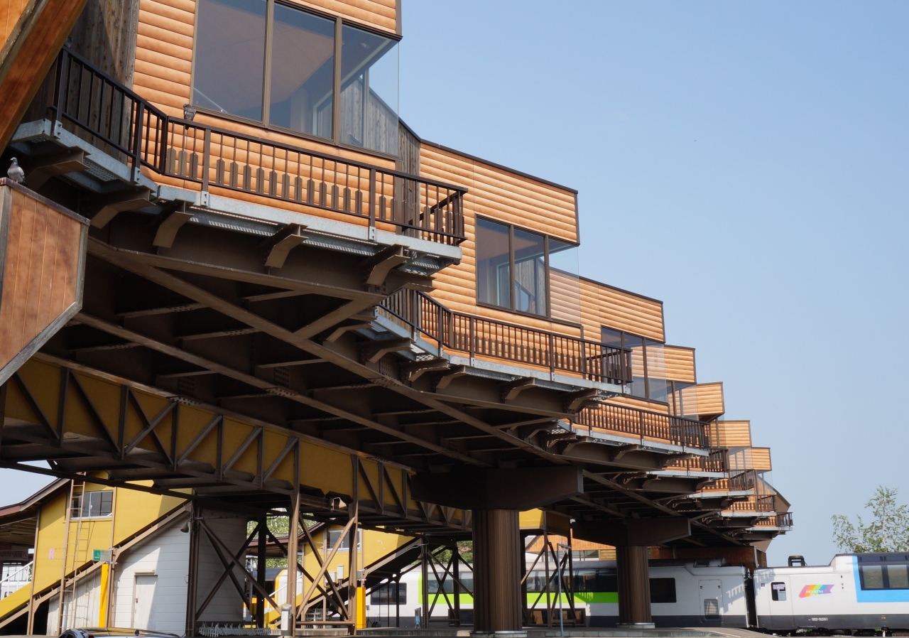 新しく跨線橋が出来ていて目を惹きました、ポッポブリッジと呼ばれているそうです。