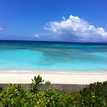 手前の方は砂浜、その後結構長い距離泳いでドロップオフ手前位まで行くと、見事な珊瑚が広がっています。魚影はそんなに濃くないかもしれませんが、珊瑚に感動です。