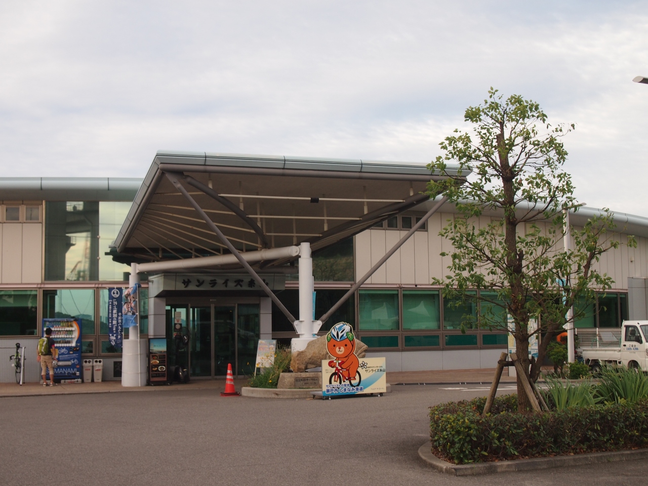 しまなみ海道のサイクリングの日に、レンタサイクルターミナルを利用しました。 今治駅からこのサンライズ糸山のすぐ近く(徒歩3分)のバス停までバスが走っています。 ただ、1日に数本で曜日によってもっと少ない運行日もあるので、車の利用者が1番多いと思います。