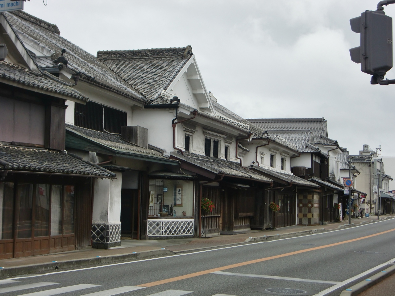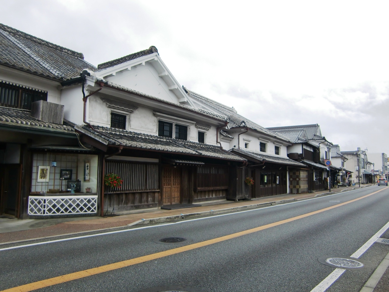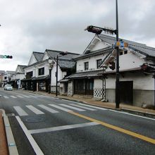 国道210号線の旧豊後街道には、白壁造りの商家が建ち並んでいます。