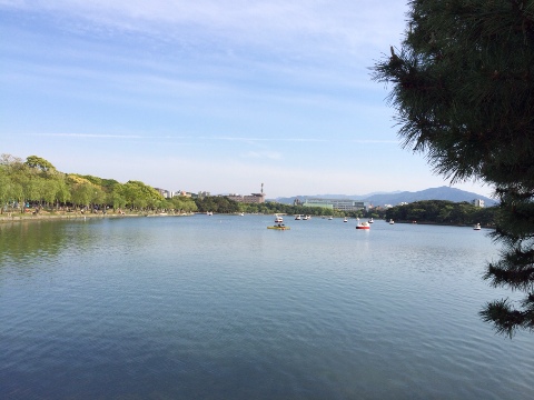 大濠公園の風景はたくさんの緑のこの池の水のある風景とで人々を癒していると思います。