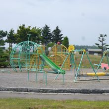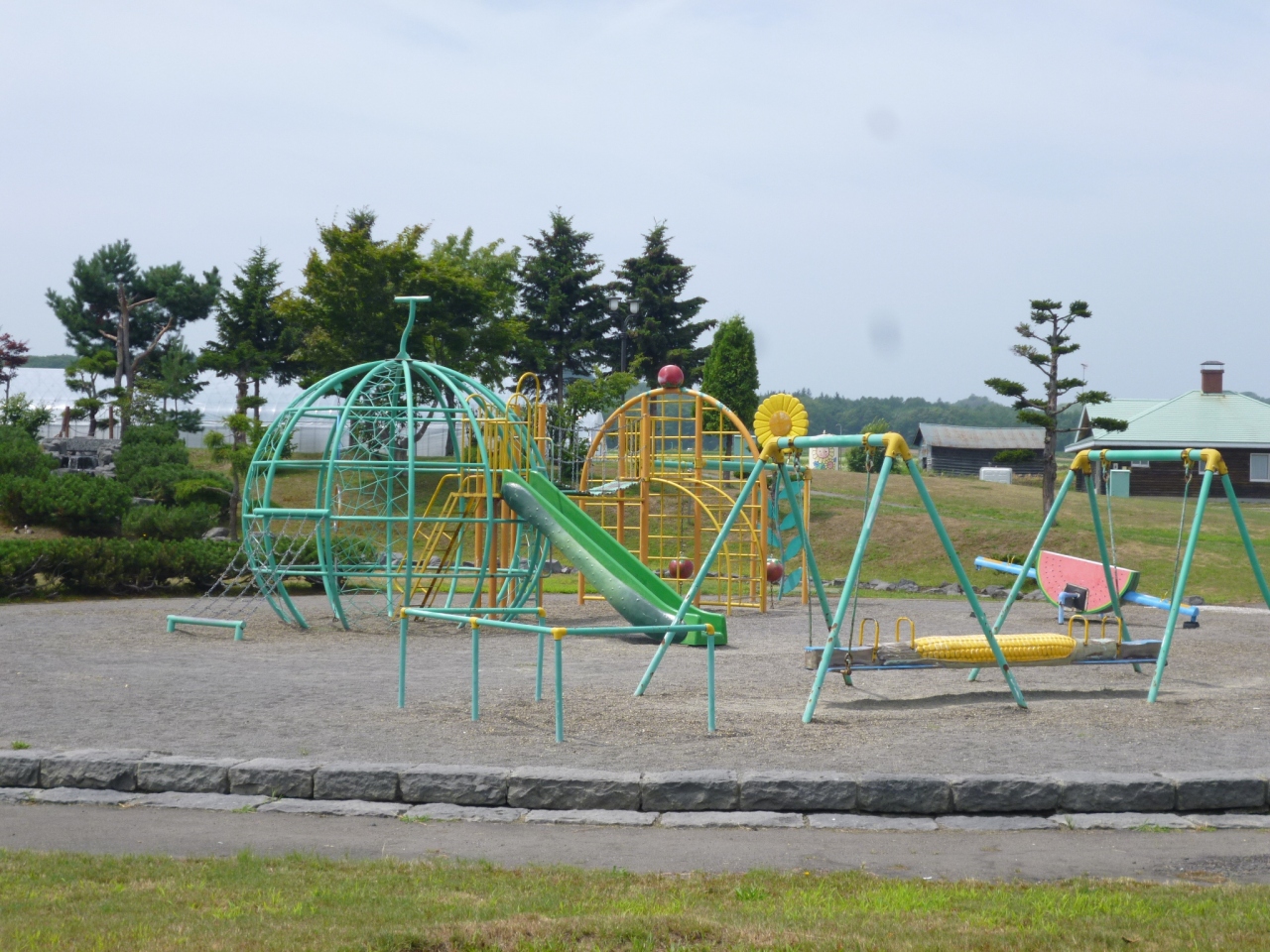 駐車場横には小さいですが遊具広場(遊具がフルーツになっていました)が、施設裏手にはひまわり畑があり、小さな子供連れの方には長旅の癒しとなります。