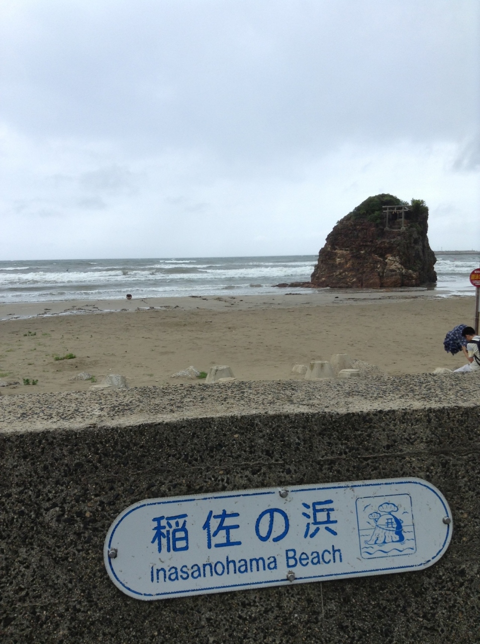稲佐の浜は、国譲り神話の舞台となった浜辺です。出雲大社から西に2Kほど行った海岸です。