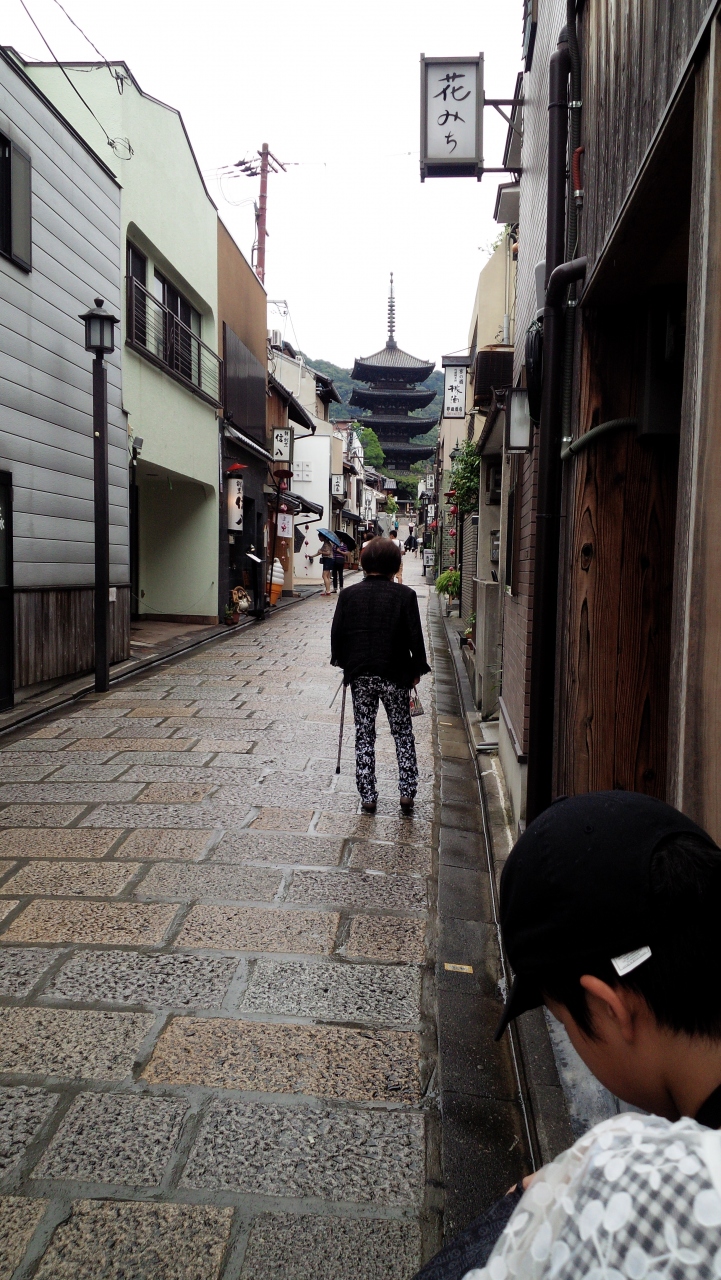 清水寺から安井金毘羅宮へ移動するため、スマホ片手に東大路通りを歩いていた時に路地からふと見るときれいな塔が見えました。「どこのお寺?」と名前わかりませんでしたが、とりあえず写真に収めました。そのあとにも同じように写真を撮る観光客の人がパラパラと。八坂の塔の絶景ポイントということを後から知りました。
