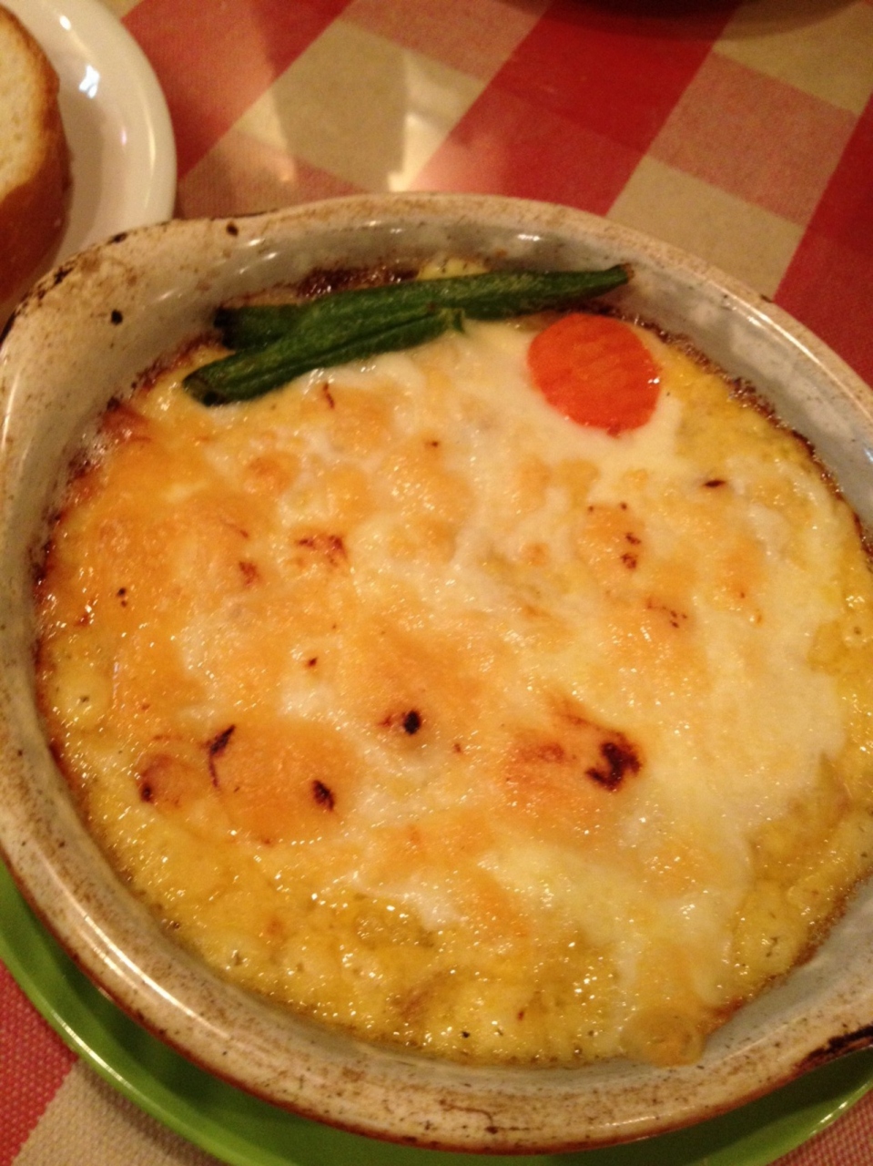 グラタンセットを注文。サラダとパンとグラタンと飲み物がついてきました。グラタンは甘くてトロトロ熱々でとても美味しいです。グラタンやドリアを食べたいなら是非オススメするお店です。