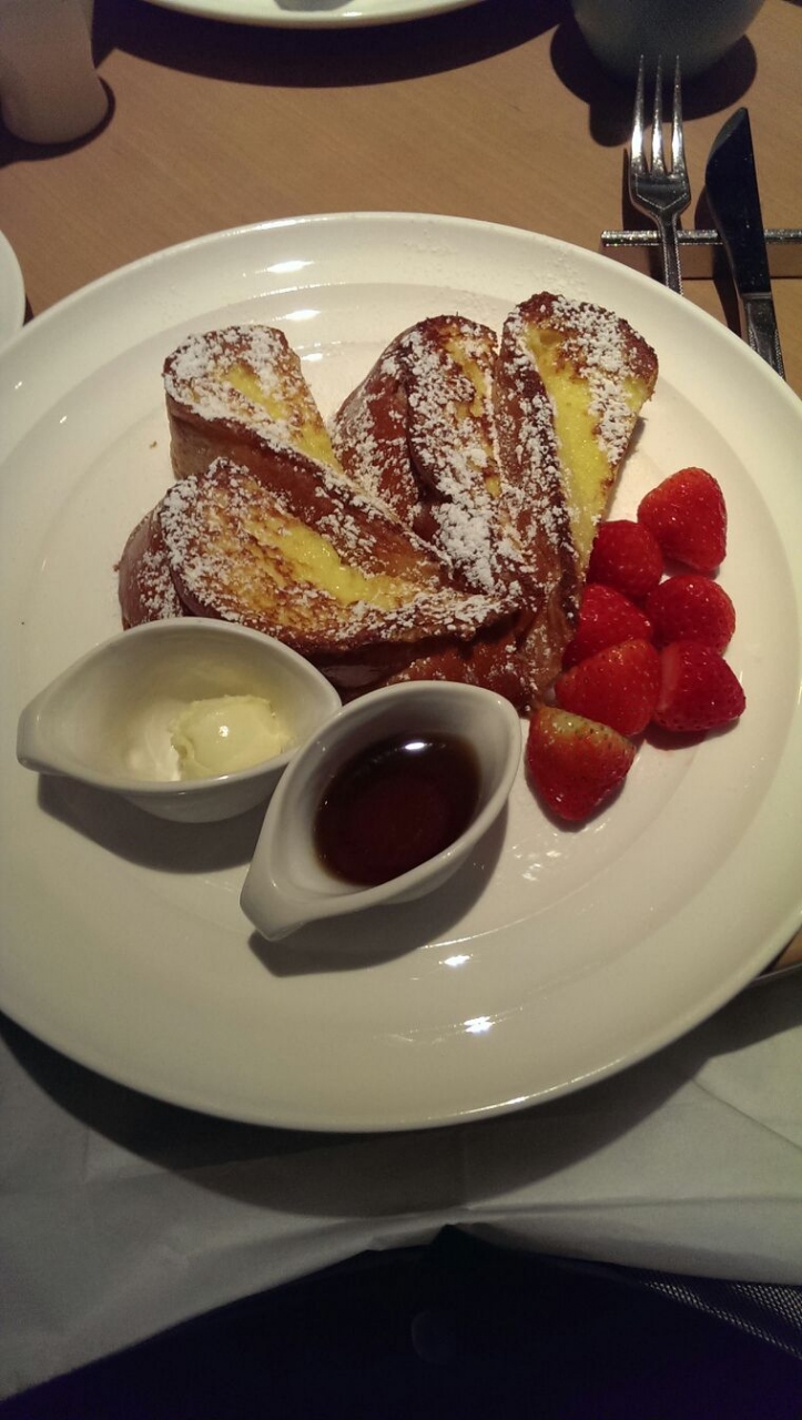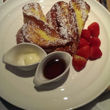こぶりのフレンチトーストが4つといちごが盛られ、