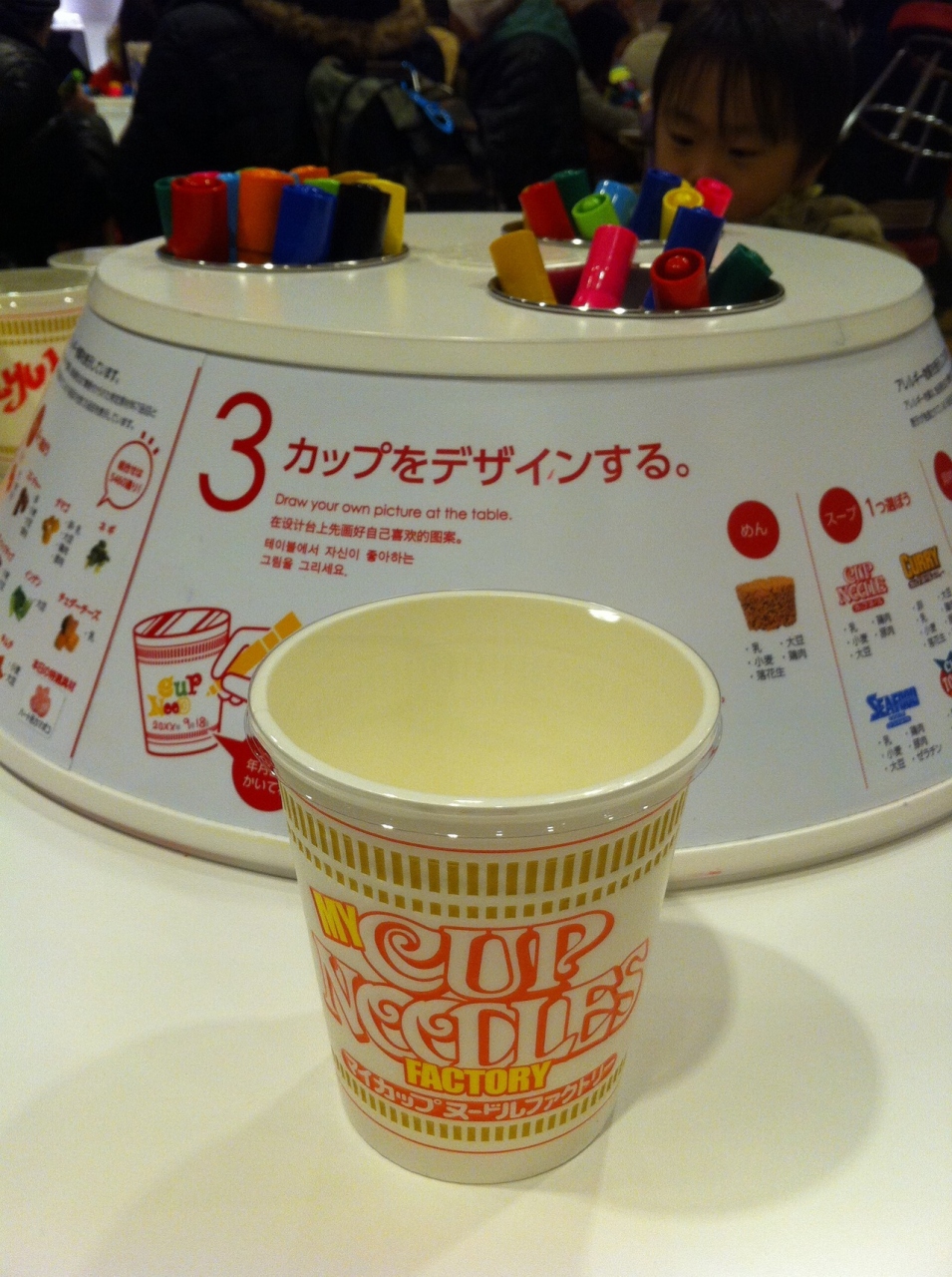 「チキンラーメン」を手作りできる工房、チキンラーメンファクトリーは、既に予約でいっぱいで入れないのはわかっていたので、世界でひとつだけのオリジナル「カップヌードル」を作ることができる工房、マイカップヌードルファクトリーで楽しみました。