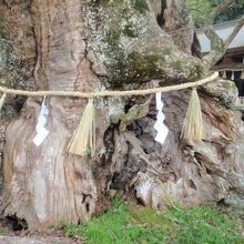 境内にそびえ、ひときわ目を引くとても立派な木は、樹齢2600年の古木で、国指定天然記念物だそうです。