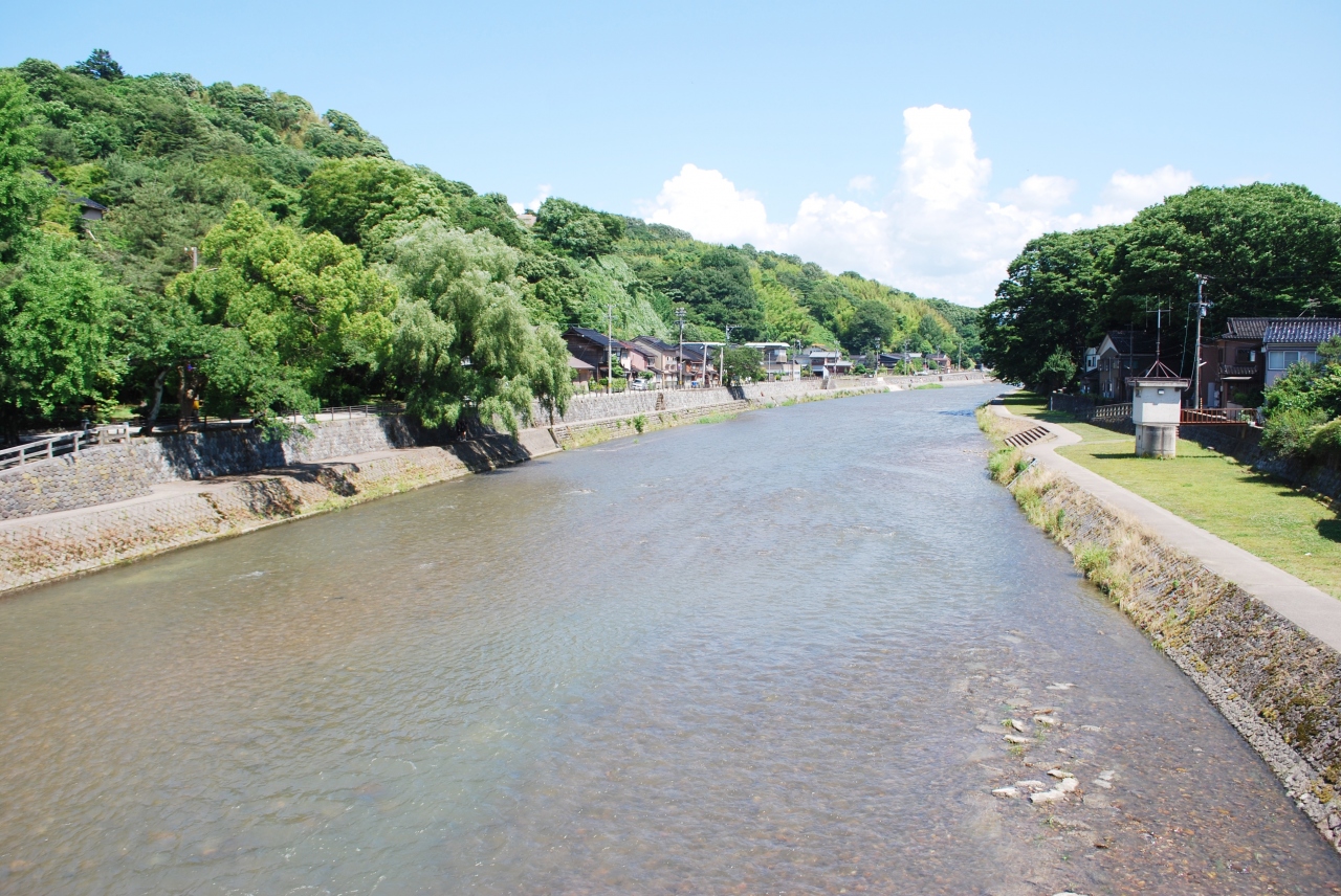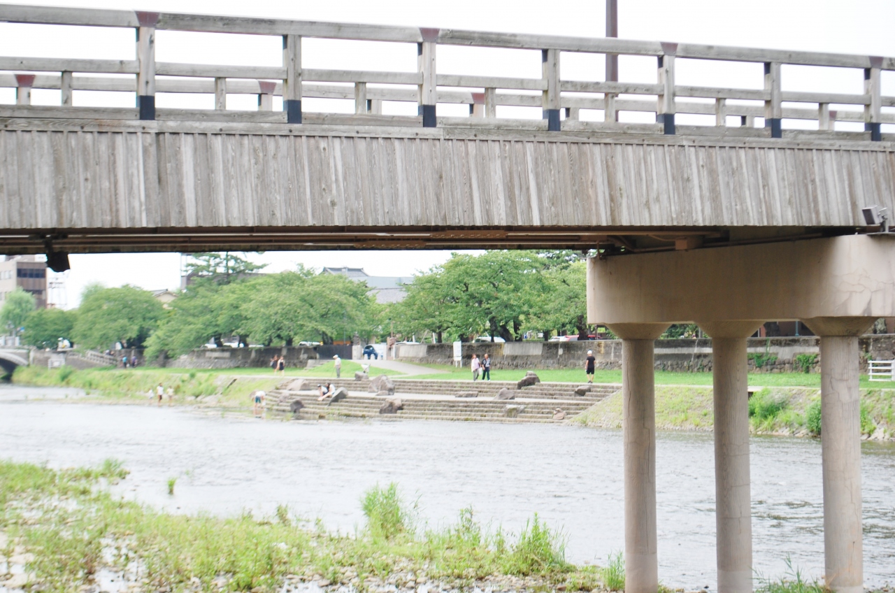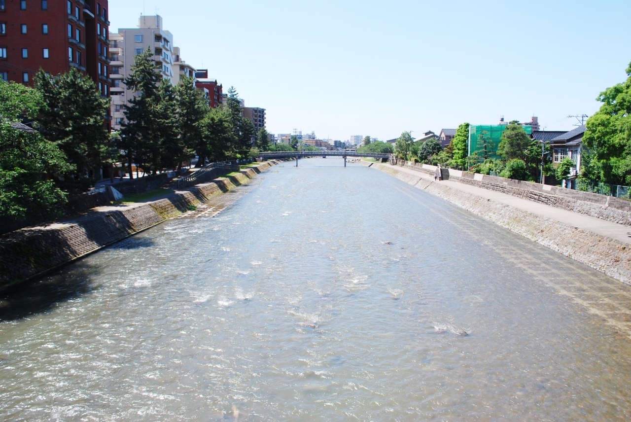 川幅が広く川底も深い犀川に比べ浅野川は、川底が浅く今では観光用のイベントになってしまいましたがかっては加賀友禅流し(絵付けのとき使った糊を洗い流す作業)が行われてしまいました。9年前の洪水、氾濫で護岸工事が行われたためにずいぶん風情がなくなってしまいました。それでも川歩きは楽しいもので梅の橋は、鏡花の滝の白糸の舞台となったところで記念碑が建っています。ひがしの茶屋街、主計町の茶屋街散策のついでに足を伸ばしてみたいものです。