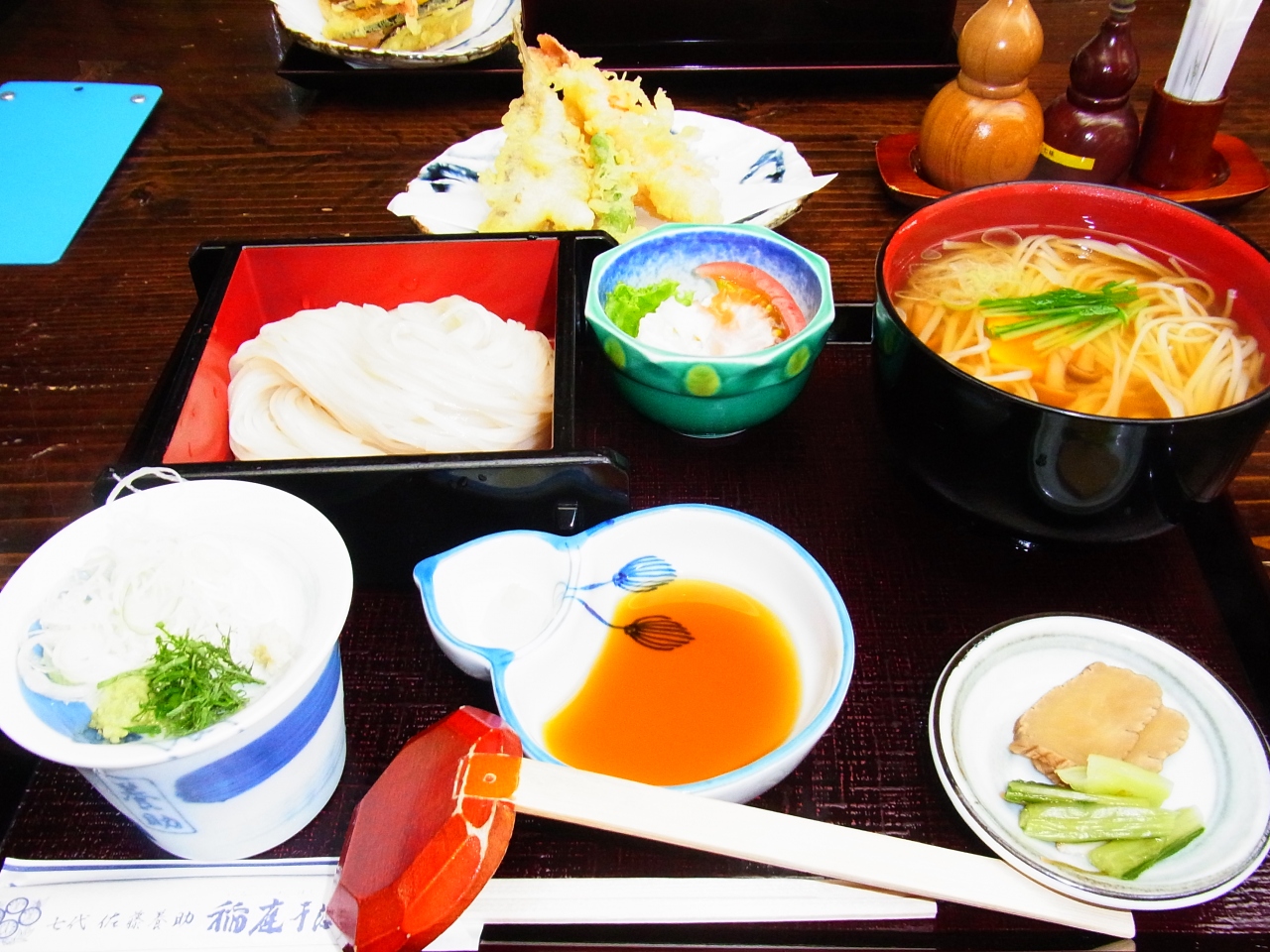 秋田に来たからには稲庭うどんは外せないだろう。秋田ふるさと村に入っている支店に行った。味くらべ天ぷら付1860円というのを注文。暖かいうどんと冷たいうどんを食べられるセットだ。どっちも捨てがたく、これを選んだが正解。それぞれにおいしかった。天ぷらはエビ、メゴチ、茄子、シシトウ、かぼちゃだった。