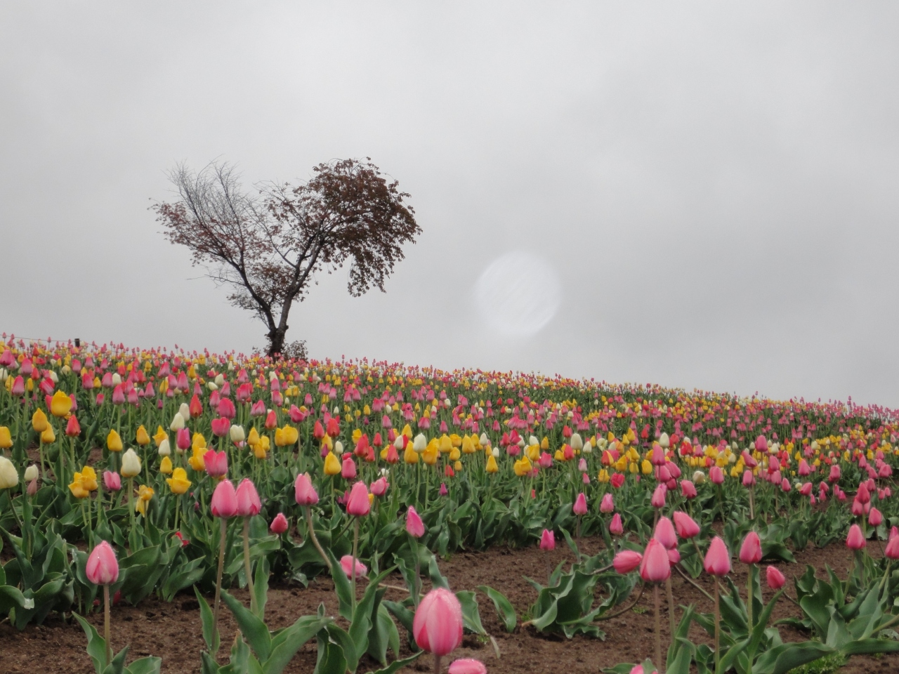 このハートの桜はチューリップ畑越しに見ると、とてもカラフルでかわいらしい。