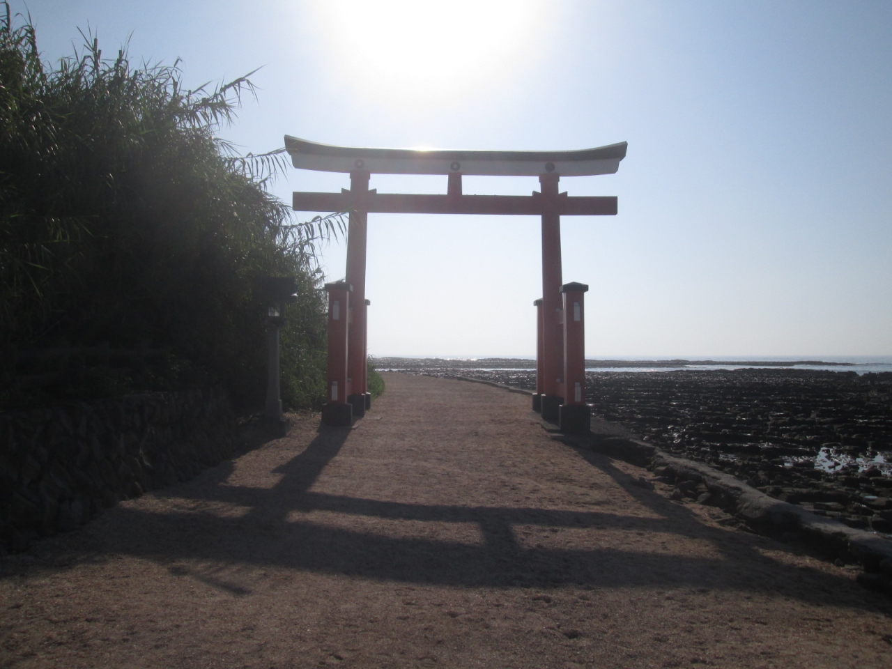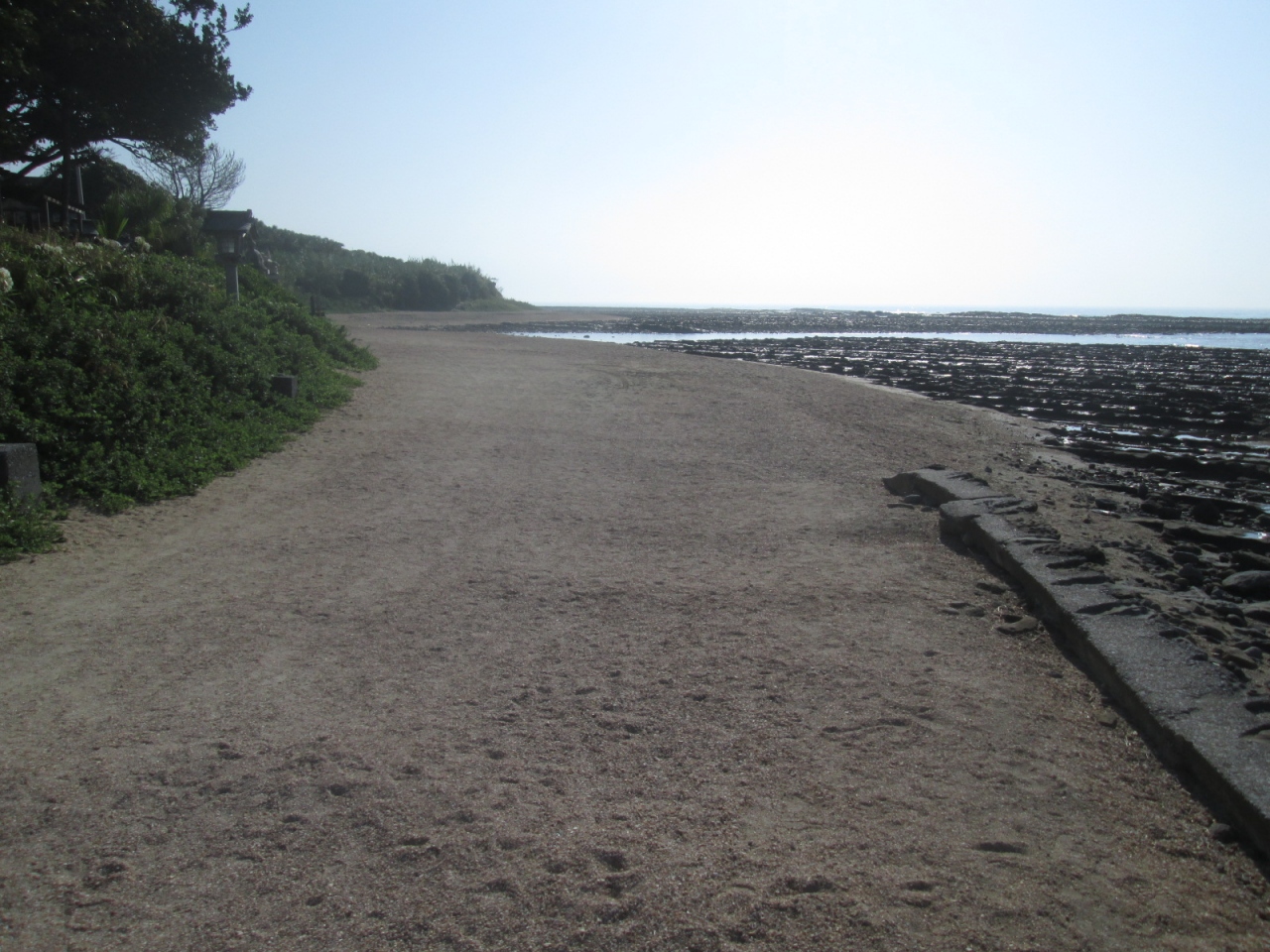- 海の中、島へと続く一本道の左右には「鬼の洗濯板」、島内には神々しい「青島神社」もあり、散歩にはピッタリの場所でした