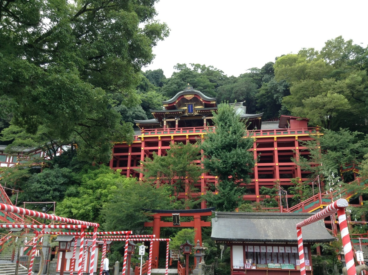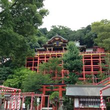 現在の社殿は、戦後立て直されたもので、朱塗りで、清水寺のように本殿が舞台にあるような作りになっていて珍しいです。