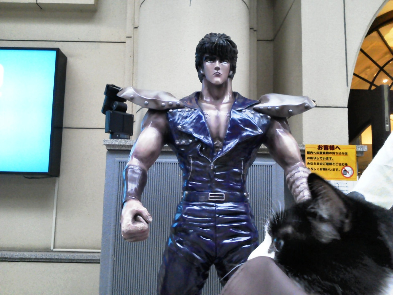 それ程大きなミュージアムではありませんが、さすが海洋堂といった感じでフィギュアがいっぱい!好きな人だったらたまらないだろーなーと思います。細かい精巧な造りに感心しました。1Fがショップでペットは2Fのミュージアムには入れないので、にゃんこは外の入口にある北斗の拳の大きなフィギュアの前で待ち、交代で見てきました。
