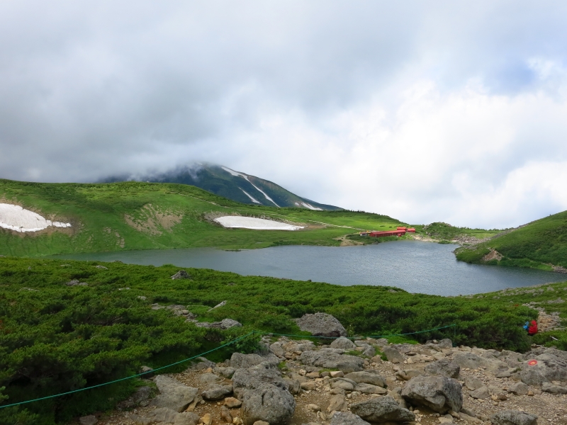 白馬大池は標高2380m、周囲2kmもあります。周辺はチングルマやワタスゲ、イワカガミなどが群生し、まるで箱庭のようです。なぜかサカナは棲んでいないとのことですが、サンショウウオが生息しているそうです。