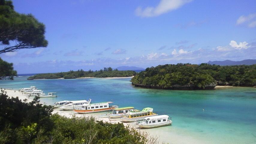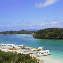 石垣島の市街地から北西に行ったところにある石垣島でも最も美しい有名でかつ素敵な景勝地が「川平湾」ですが、ミシュランでも評価された景観を見れるスポットがここ「川平公園」です。ここからの展望エリアなどから見下ろす景観は天気にもよりますが、よくガイドブックなどの写真にも使われるアングルです。日差しがさしたエメラルドグリーンの海はとても爽快ですね。この時も多くの観光客がいましたが、台湾からの観光客もかなりの数がいましたね。川平湾を一望できるこの公園は定番の観光コースですね。この公園から階段でくだっていくと、かの有名なグラスボート乗り場になります。