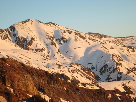 5月の連休はこの山に登る。積雪があるので素人さんは無理だが雪山の経験があれば楽に楽しめる。市ノ瀬から林道を登る。1時間半ほどかかる。自転車やバイクの登山者もいるがぽたぽた歩くのも楽しい。上は小屋が埋もれるぐらいの雪だが眺めは抜群である。