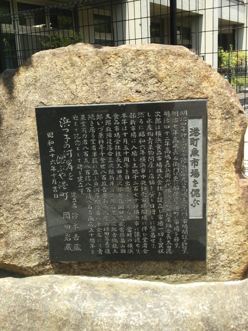 こちらは1871年に高島嘉衛門が市場開設の許可を得て、1874年に船便には最適の場所といってもいい港町で生鮮食品などを扱う市場を開設した場所でもある。そして、1931年に今現在石碑が置いてある横浜市中央卸売市場に設置したとのことです。